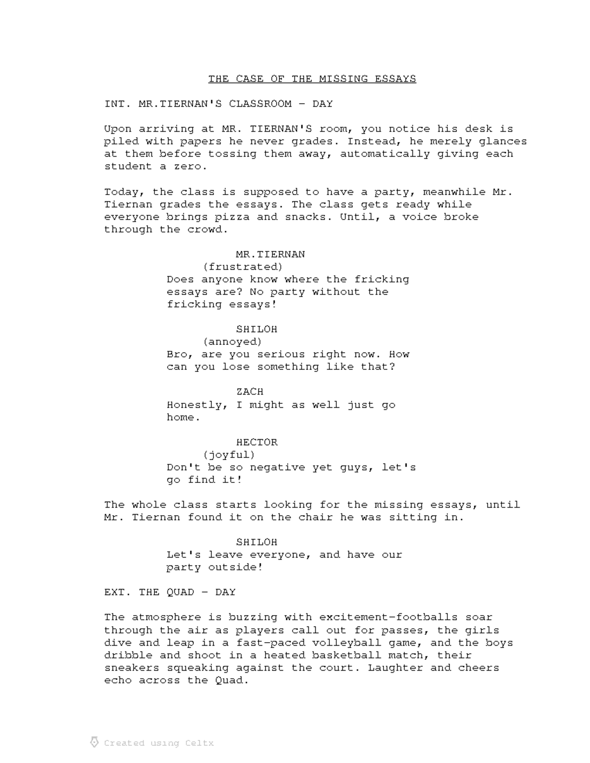 Script My Project - Created using Celtx THE CASE OF THE MISSING ESSAYS