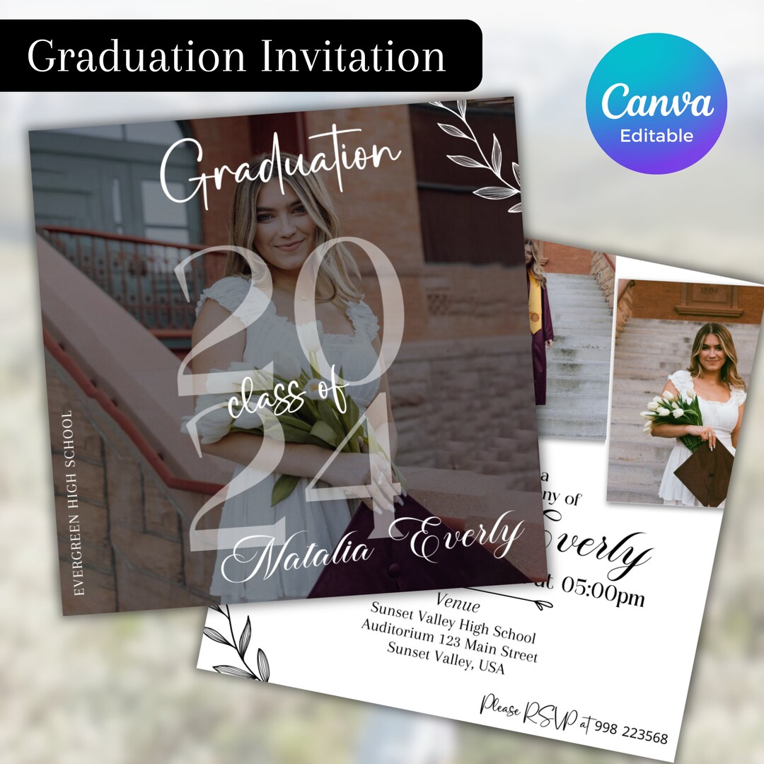 Chic Graduation Invitation Template Dual-sided, Editable in Canva ...