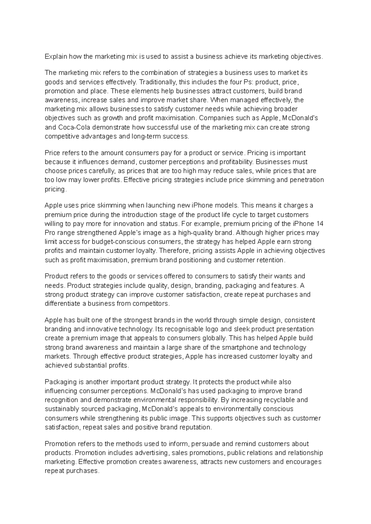 Marketing Mix Strategies for Achieving Business Objectives - Studocu