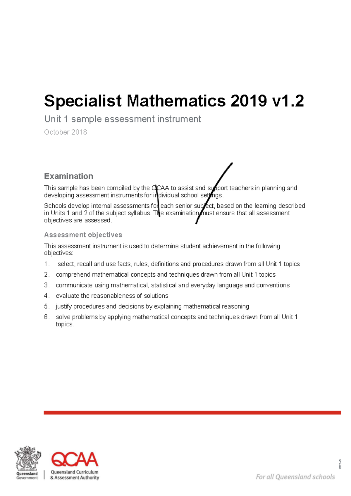 Specialist Mathematics 2019 v1.2 Unit 1 Sample Assessment Instrument ...