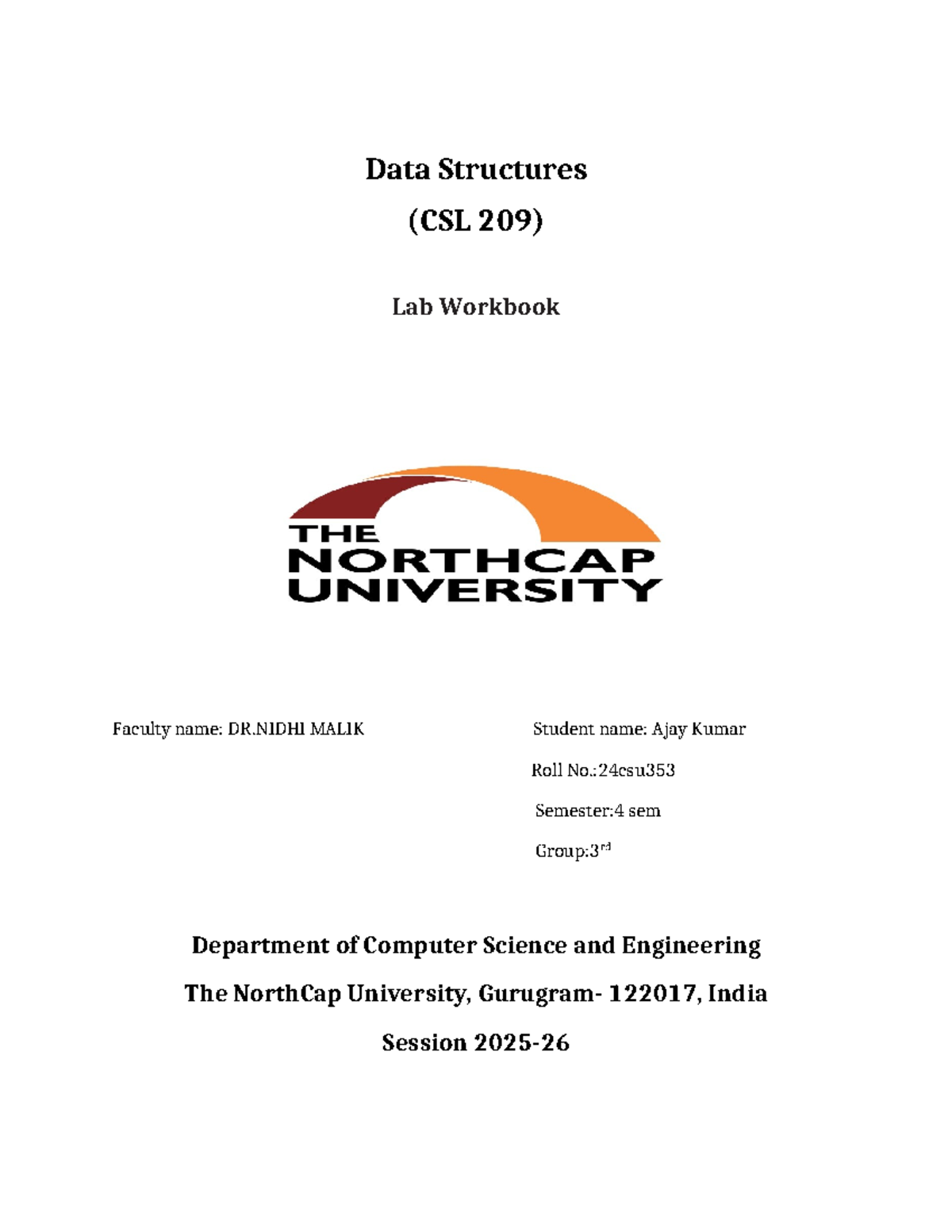 Data Structures Lab Workbook (CSL 209) by Dr. Nidhi Malik - Studocu