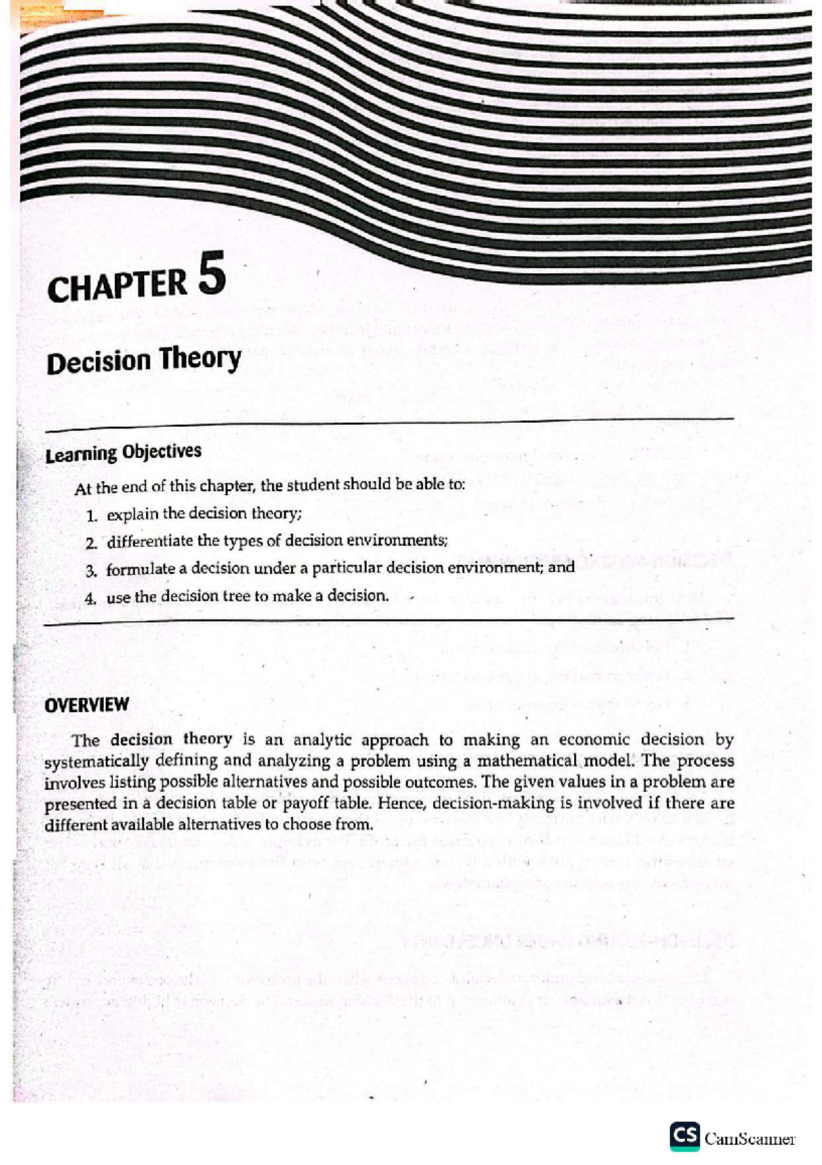 CHAPTER D: Decision Theory Learning Objectives and Overview (MS C5 ...