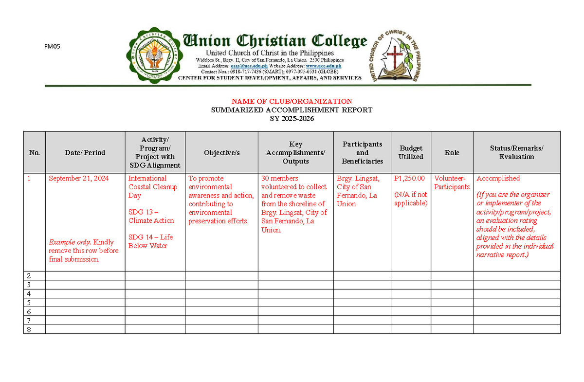 Summarized Accomplishment Report SY 2024: Coastal Cleanup Day - Studocu