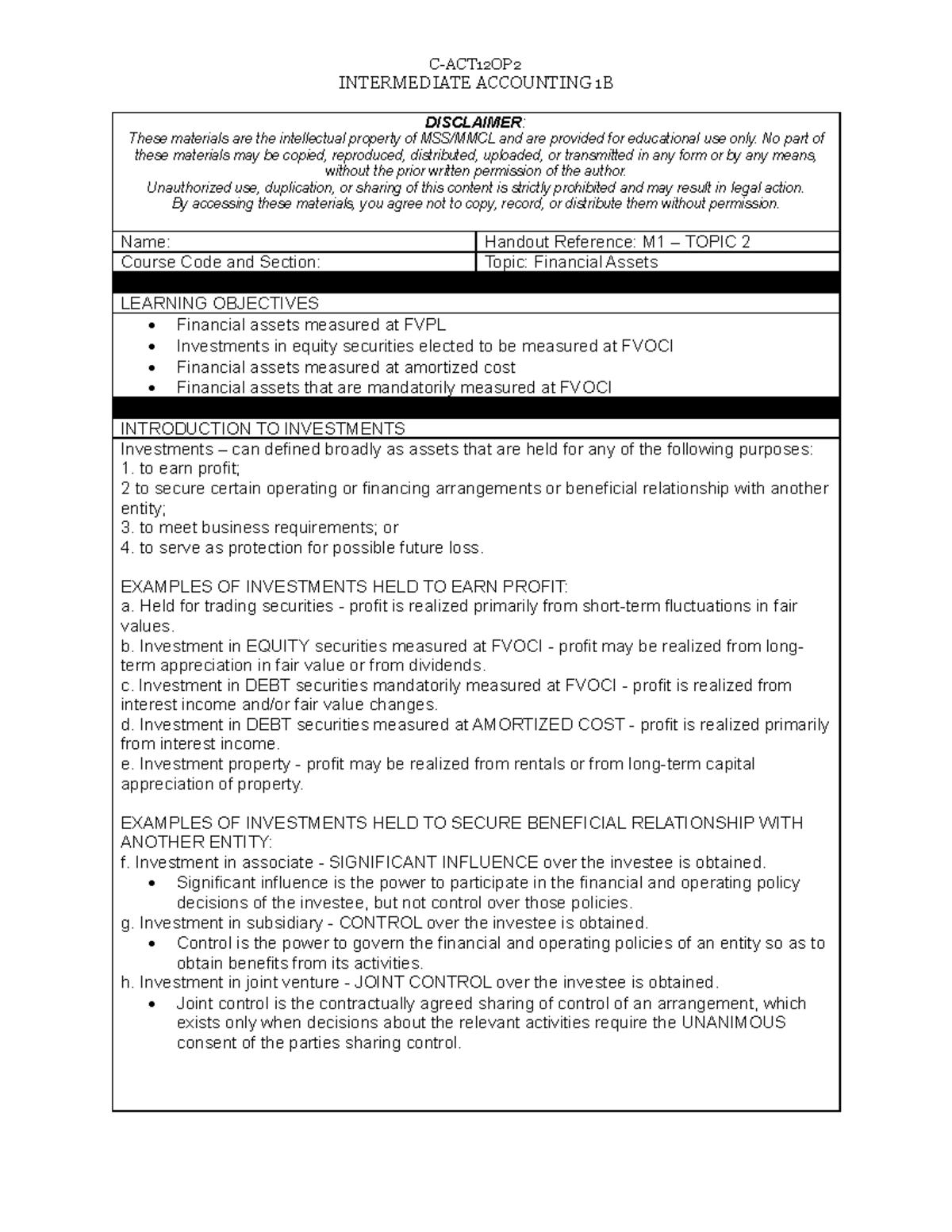 Intermediate Accounting 1B: Financial Assets Overview and Key Concepts ...