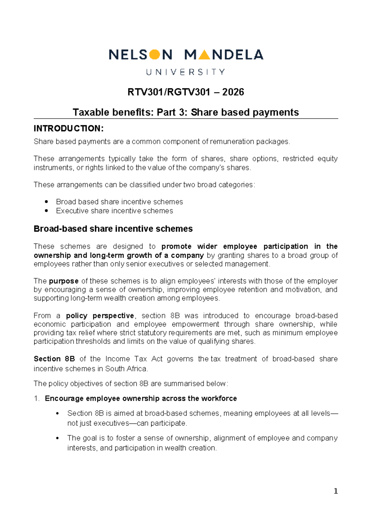 Tax 3: 2026 Taxable Benefits - Part 3: Share-Based Payments Overview ...
