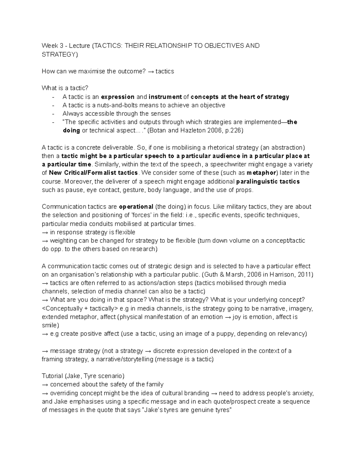 MDIA2006 Week 3 Lecture: Tactics in Relation to Strategy and Objectives ...