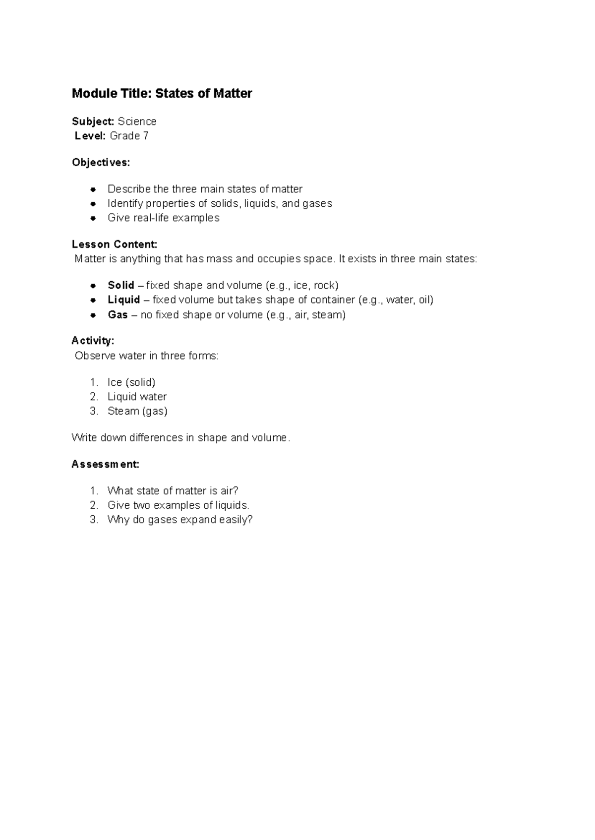 Grade 7 Science Lecture: States of Matter Explained - Studocu