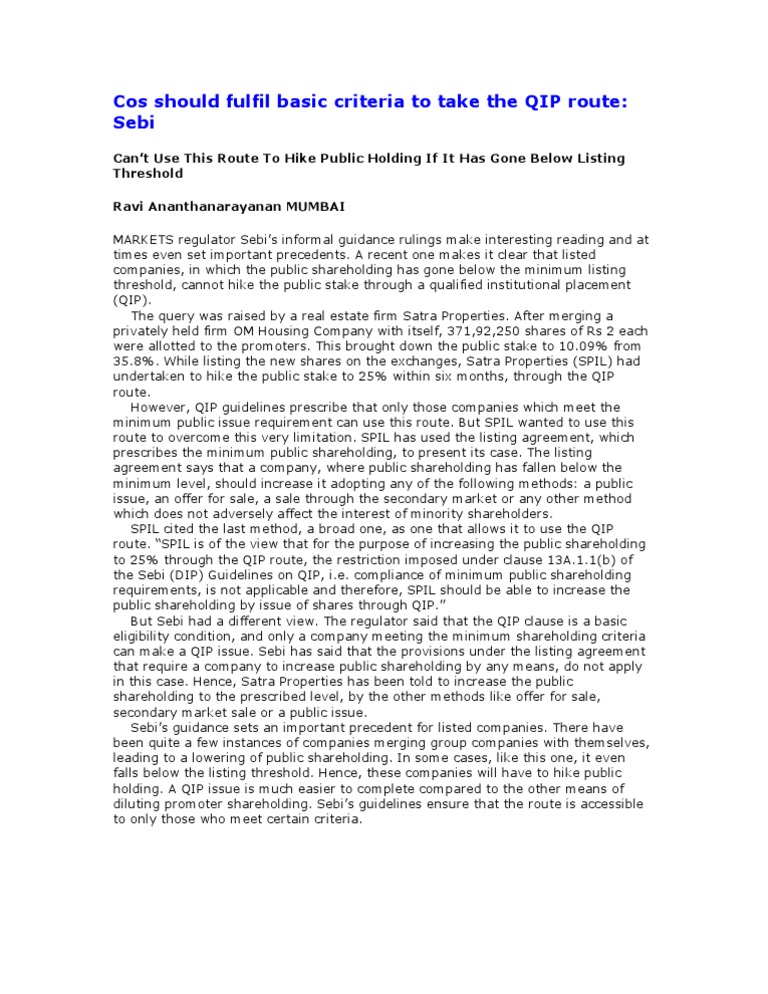 Qualified Institutional Placement QIP Procedure | PDF | Securities ...