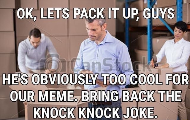 OK, LETS PACK IT UP GUYS HE'S OBVIOUSLY TOO COOL FOR OUR MEME. BRING ...