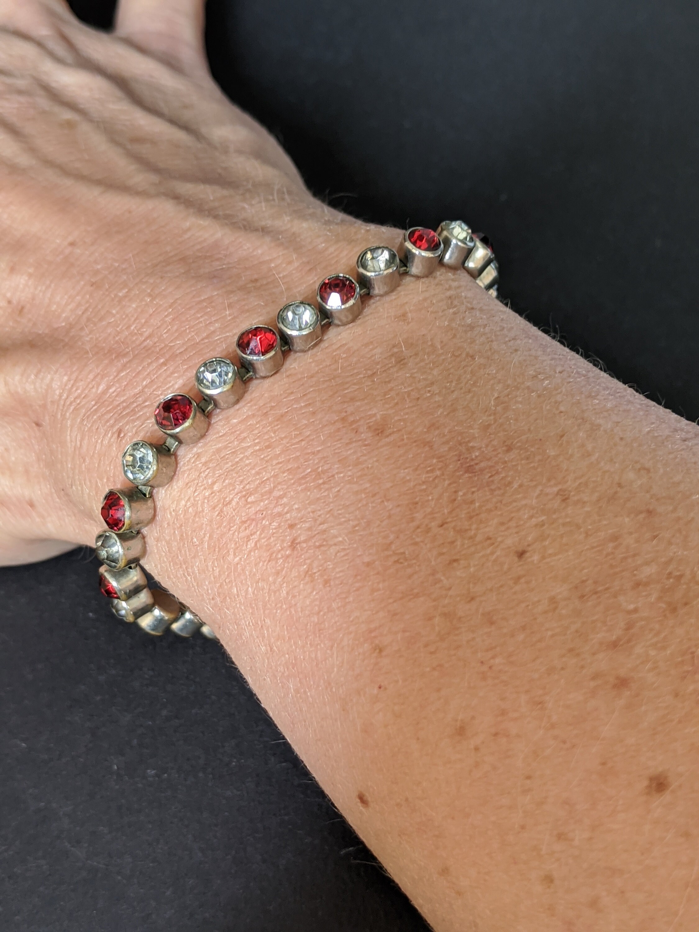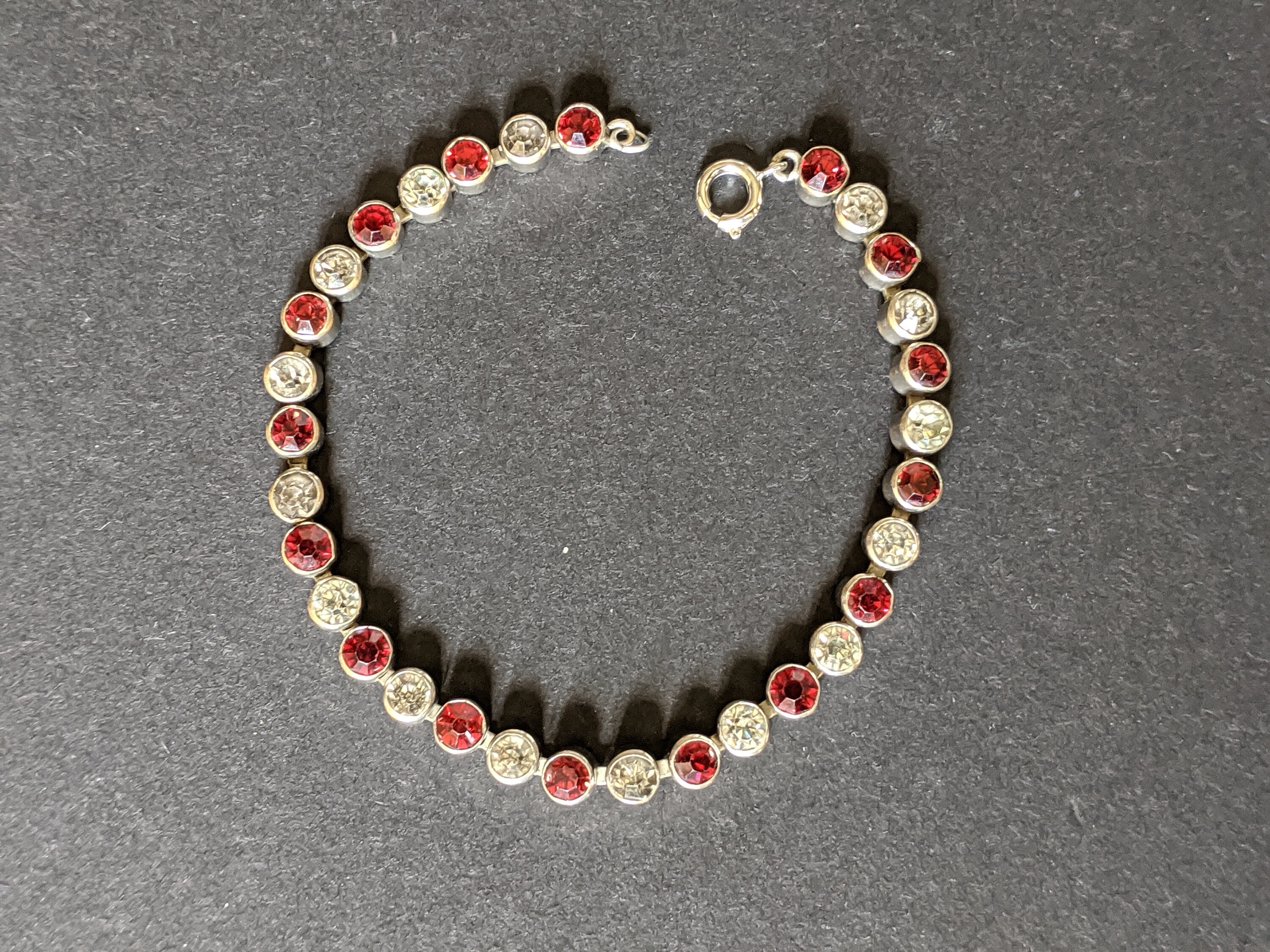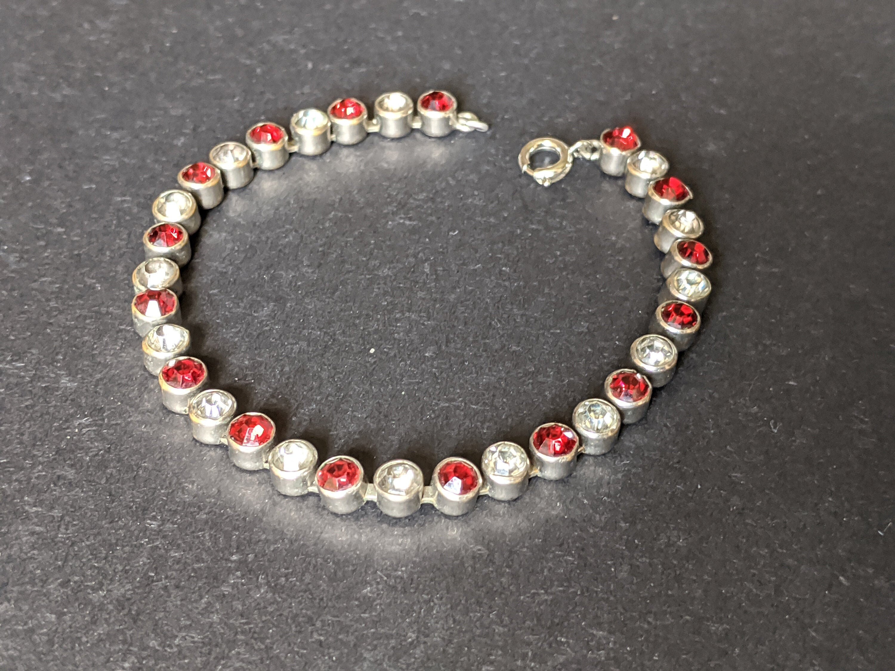 Vintage 1930s Art Deco Collet Set Bright Ruby Red and Clear Rhinestone ...