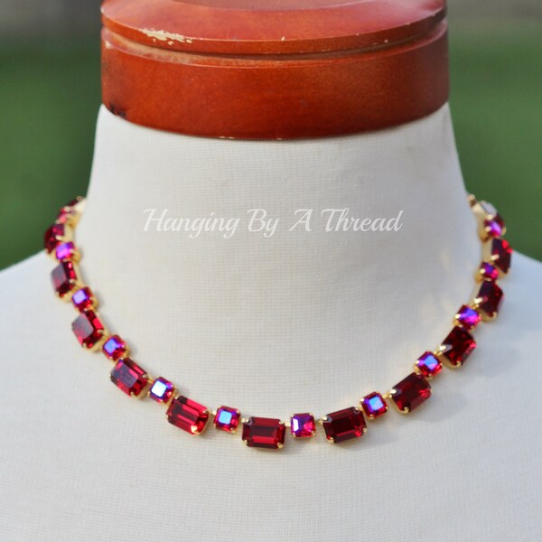 Ruby Red Aurora Crystal Collet Necklace - Large Octagon – Dames a la Mode