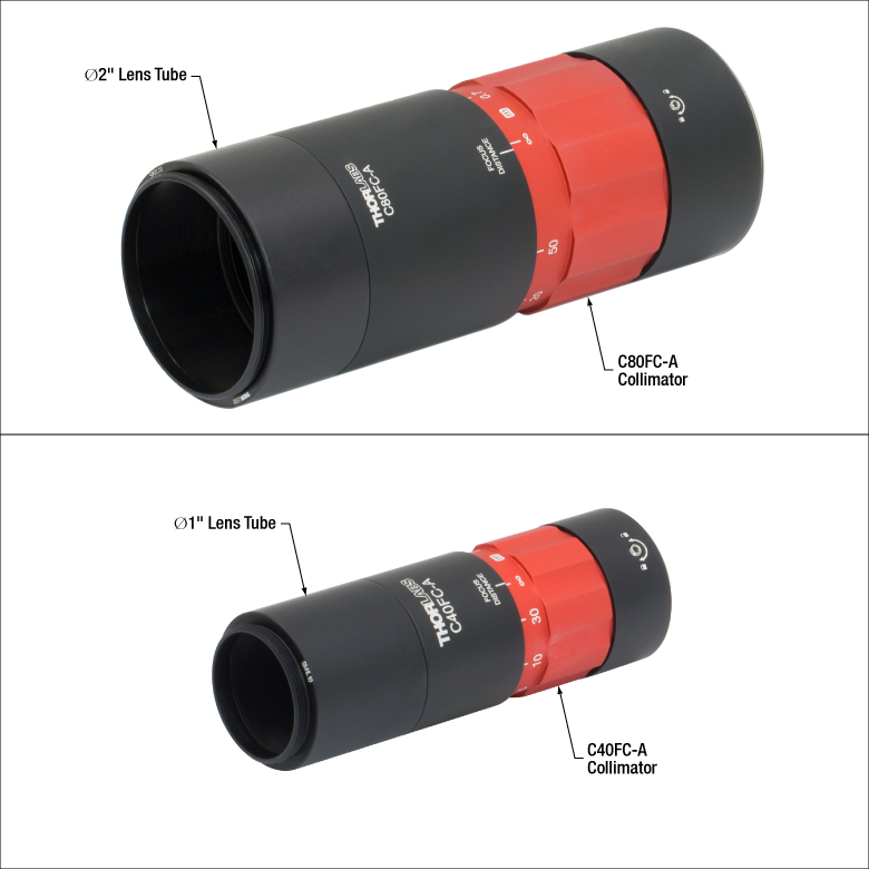 Thorlabs · Large-Beam Achromatic Fiber Collimators, Adjustable Focus