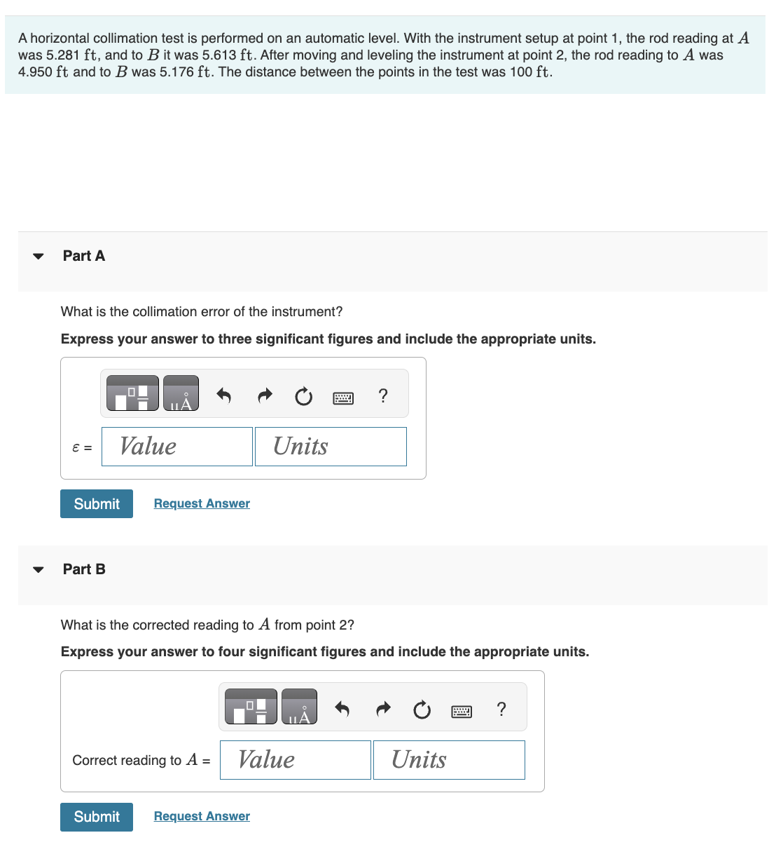 Solved What is the collimation error if a peg test is run as | Chegg.com