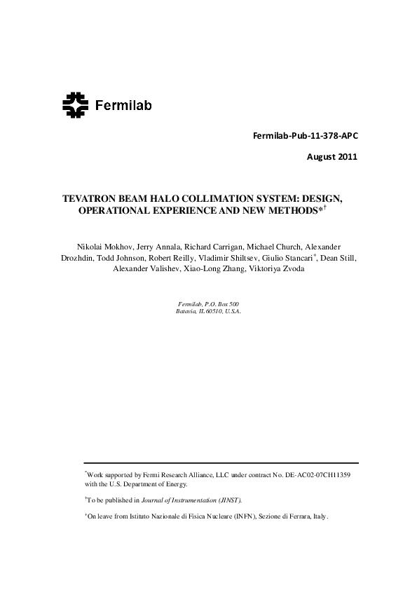 (PDF) Tevatron beam halo collimation system: design, operational ...