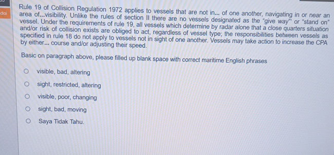 Rule 19 of Collision Regulation 1972 applies | StudyX