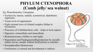 Characteristics of Ctenophora, Discuss structure,feeding,colloblast ...