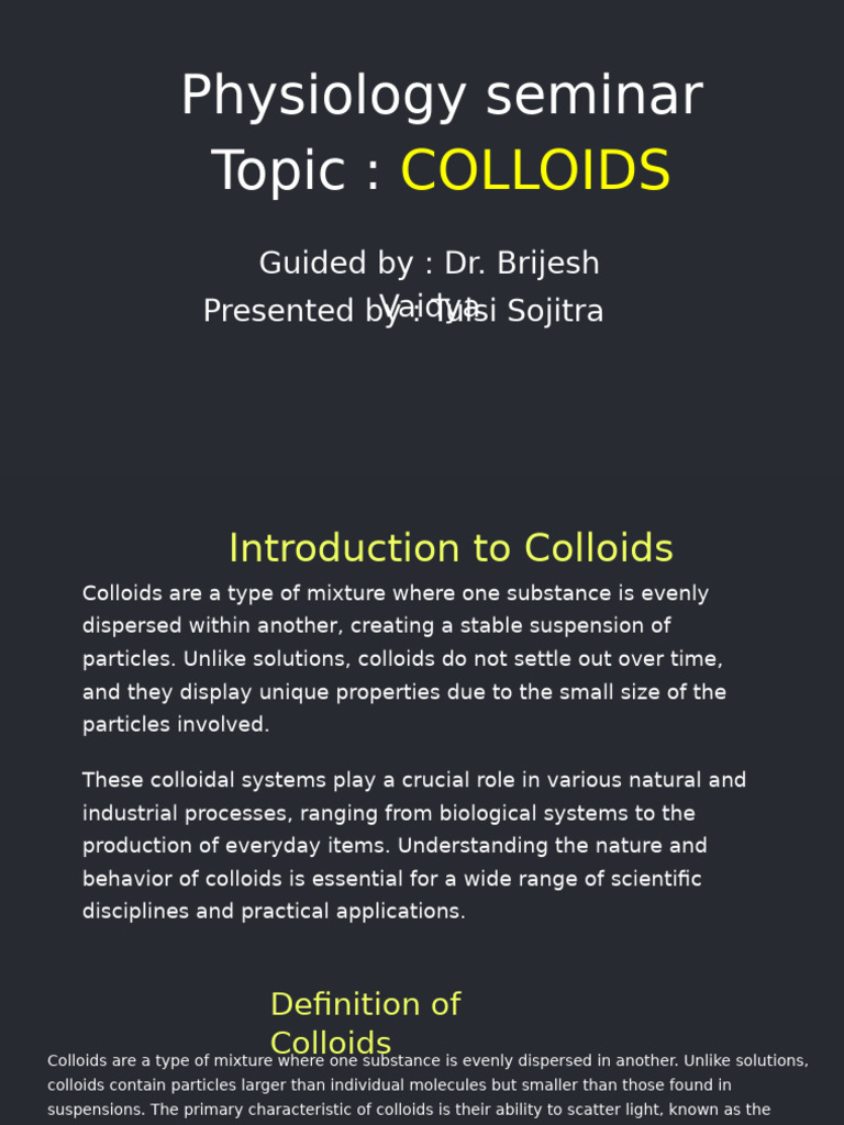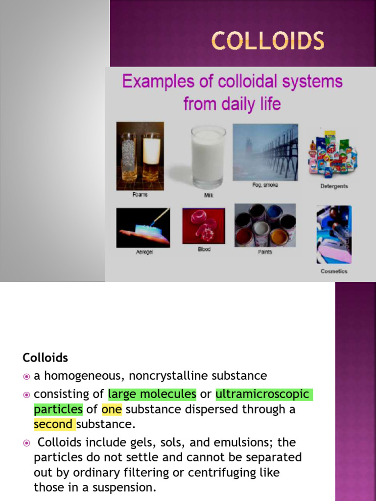 Colloids presentation slides | PPTX | Chemistry | Science