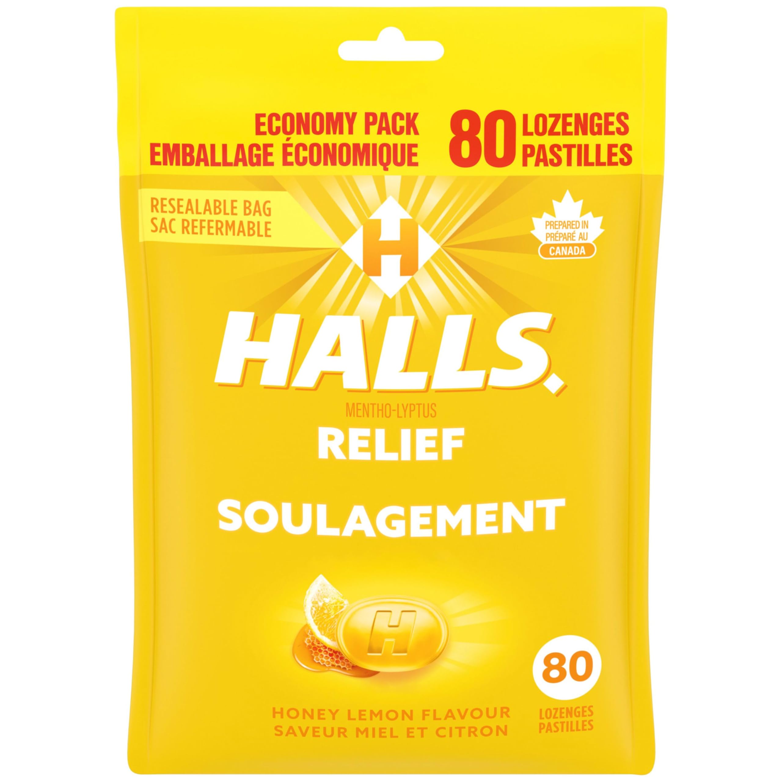 HALLS Honey Lemon Cough Drops, Throat Lozenges, Sore Throat Relief ...