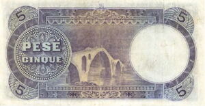 Banconota: 5 Franka Ari (Albania(1926 ND "Franka Ari" Issue) Wor:P-2b 💴
