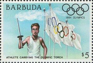 Stamp: Athlete Carrying Olympic Torch (Barbuda(Summer Olympic Games ...