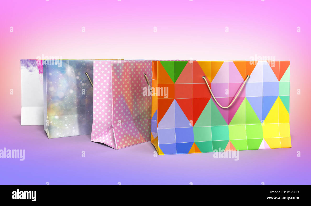 coloder paper bags 3d render on gradient background Stock Photo - Alamy