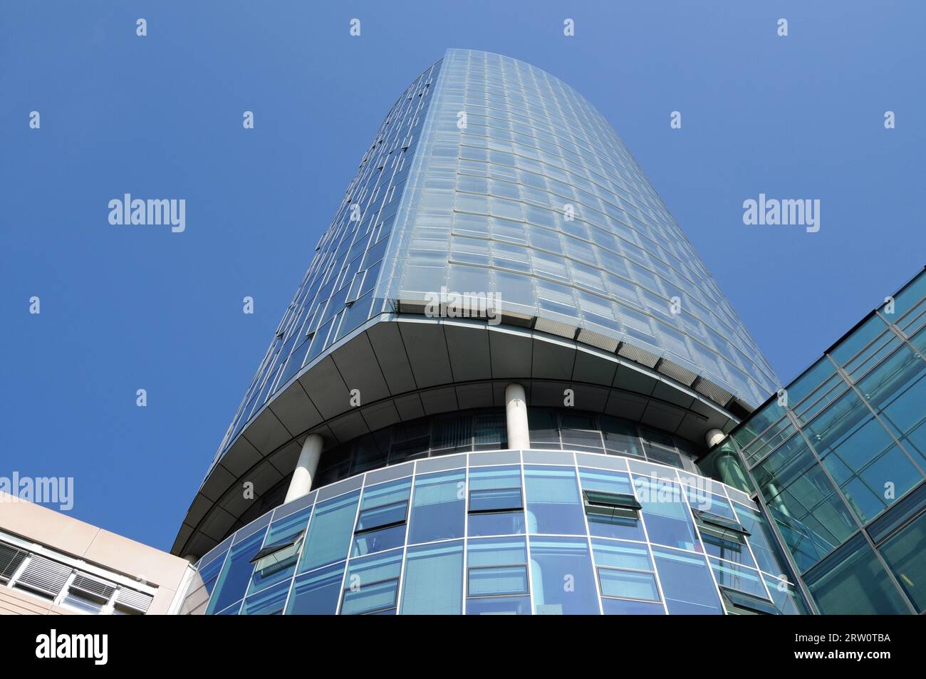 Eerie view of a futuristic high rise building in Cologne, Germany Stock ...