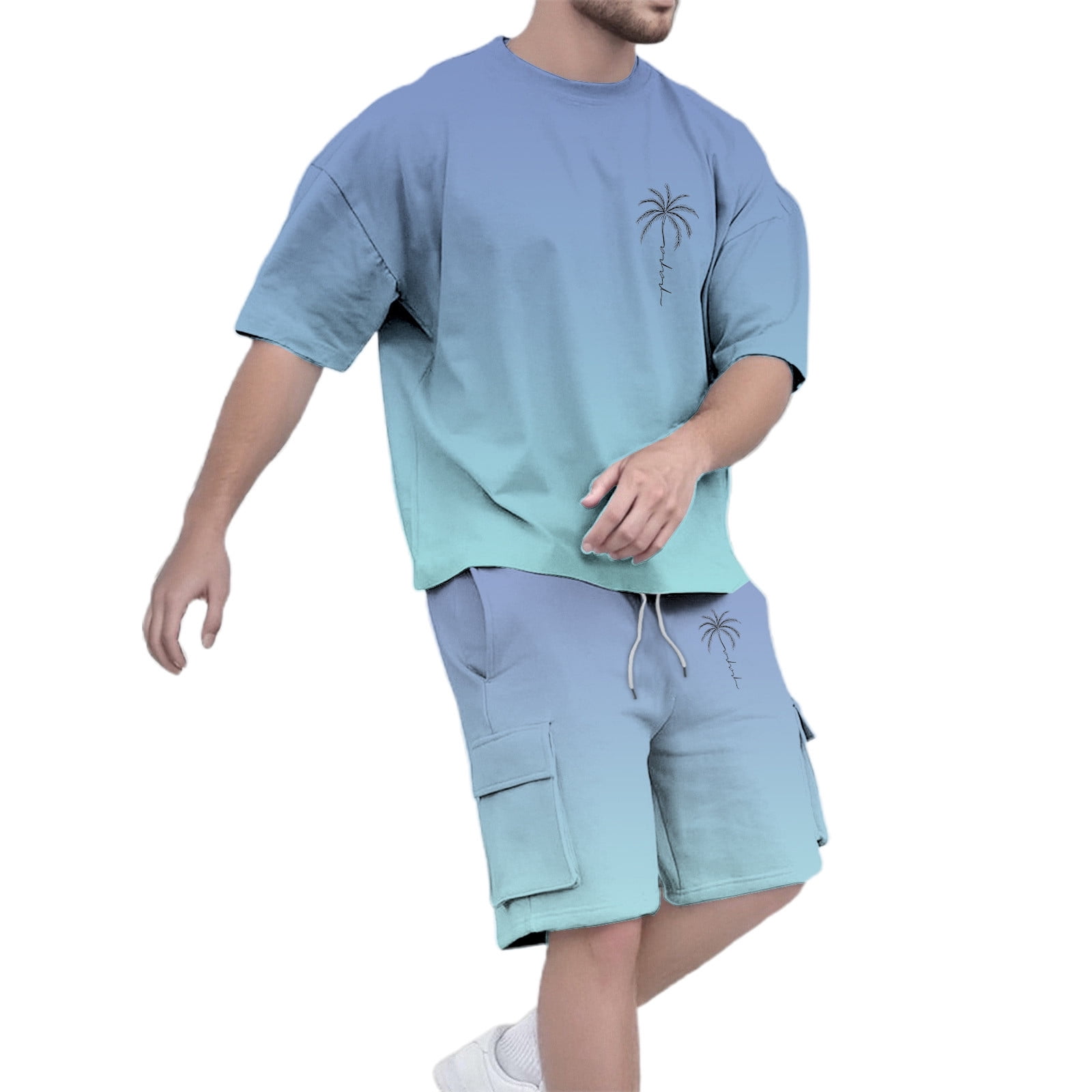 CONZONE Mens 2 Peice Outfits Gradient Color Letter Graphic Short Sleeve ...