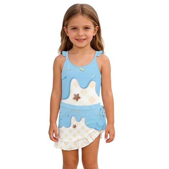 CUZIBR Kids Child Girls Swimwear Ice Cream Print One Piece Ruffles Trim ...