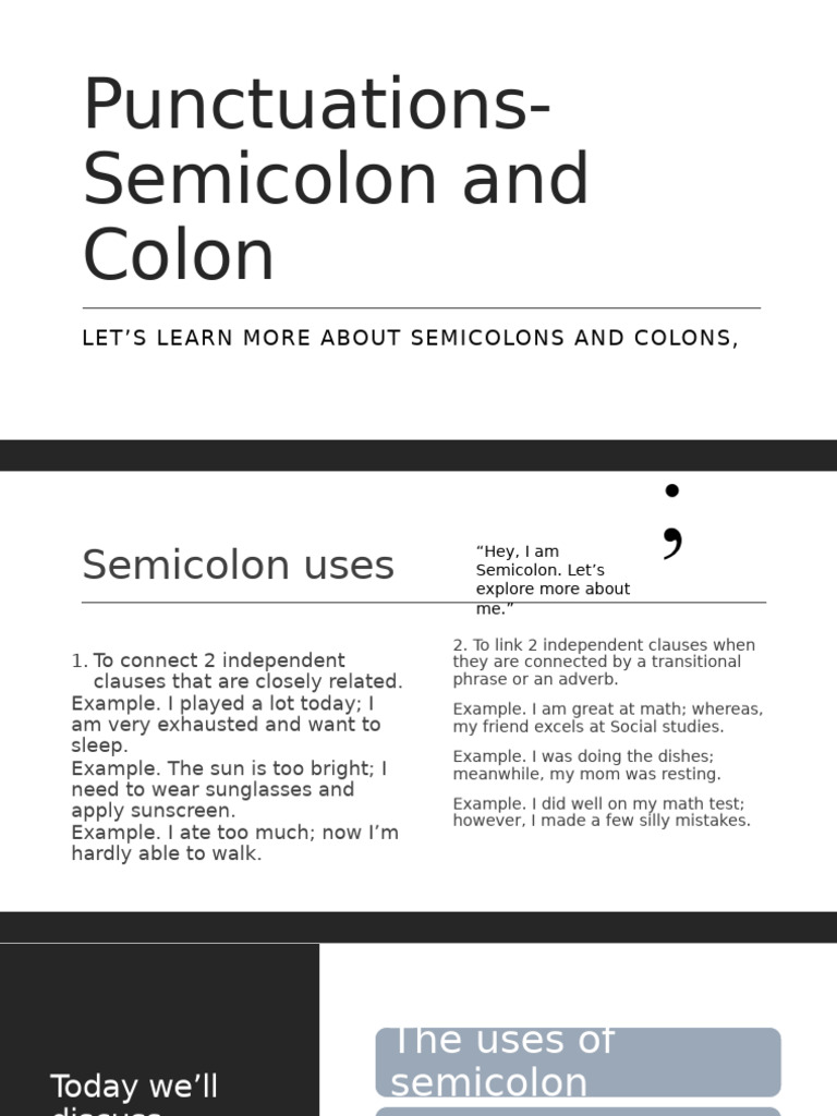 Punctuations- Semicolon and Colon | PDF | Comma | Language Mechanics