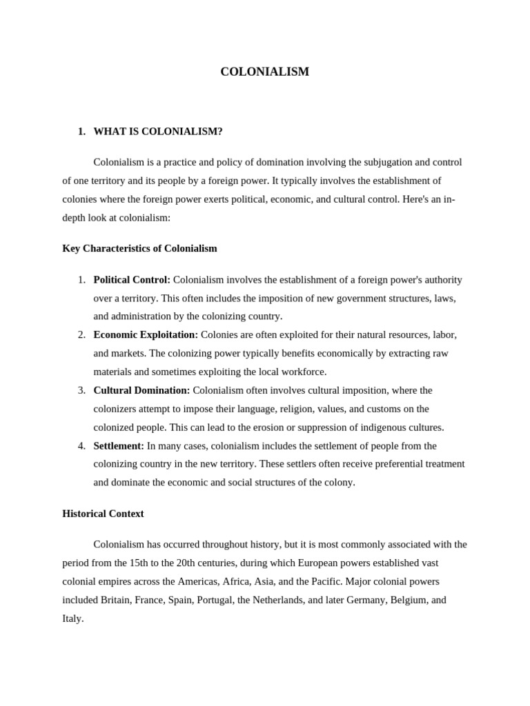SOLUTION: Sub colonialism what is colonialism - Studypool