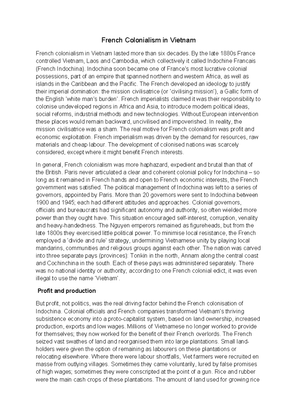 French Colonialism in Vietnam: Economic Exploitation and Impact - Studocu