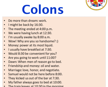 Sentences with Colon in them (40 Examples) - EnglishGrammarSoft
