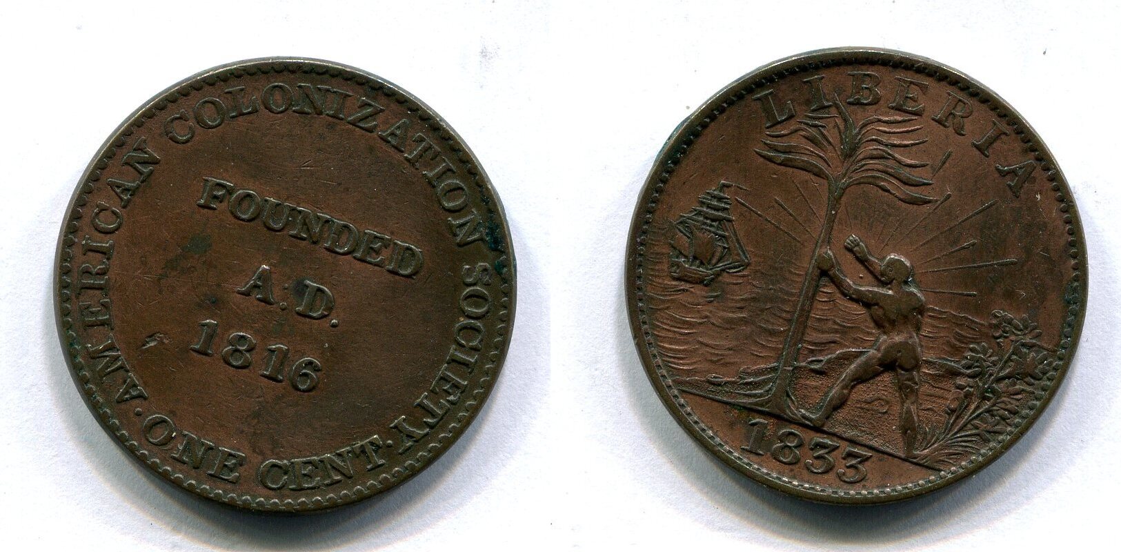 Interesting Token-1833 Liberia Cent KM# Tn1, American Colonization ...