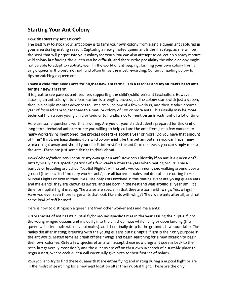Starting Your Ant Colony | PDF | Ant | Ethology