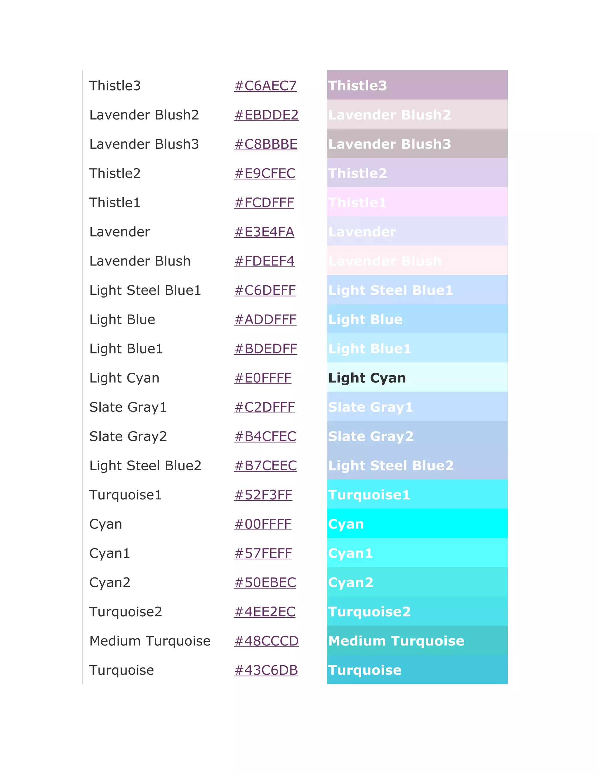 FULL HTML COLOR CODE LIST ***USEFUL*** - The Tech Game