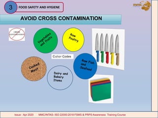 Prevent cross contamination,use correct colour coded chopping board and ...