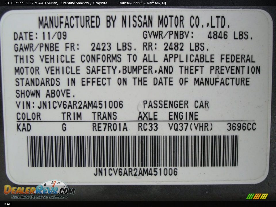 Infiniti Color Code KAD Graphite Shadow | DealerRevs.com
