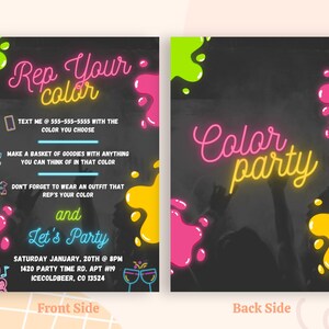 Editable Party Invitation, Rep Your Color, Color Theme Party Invite ...