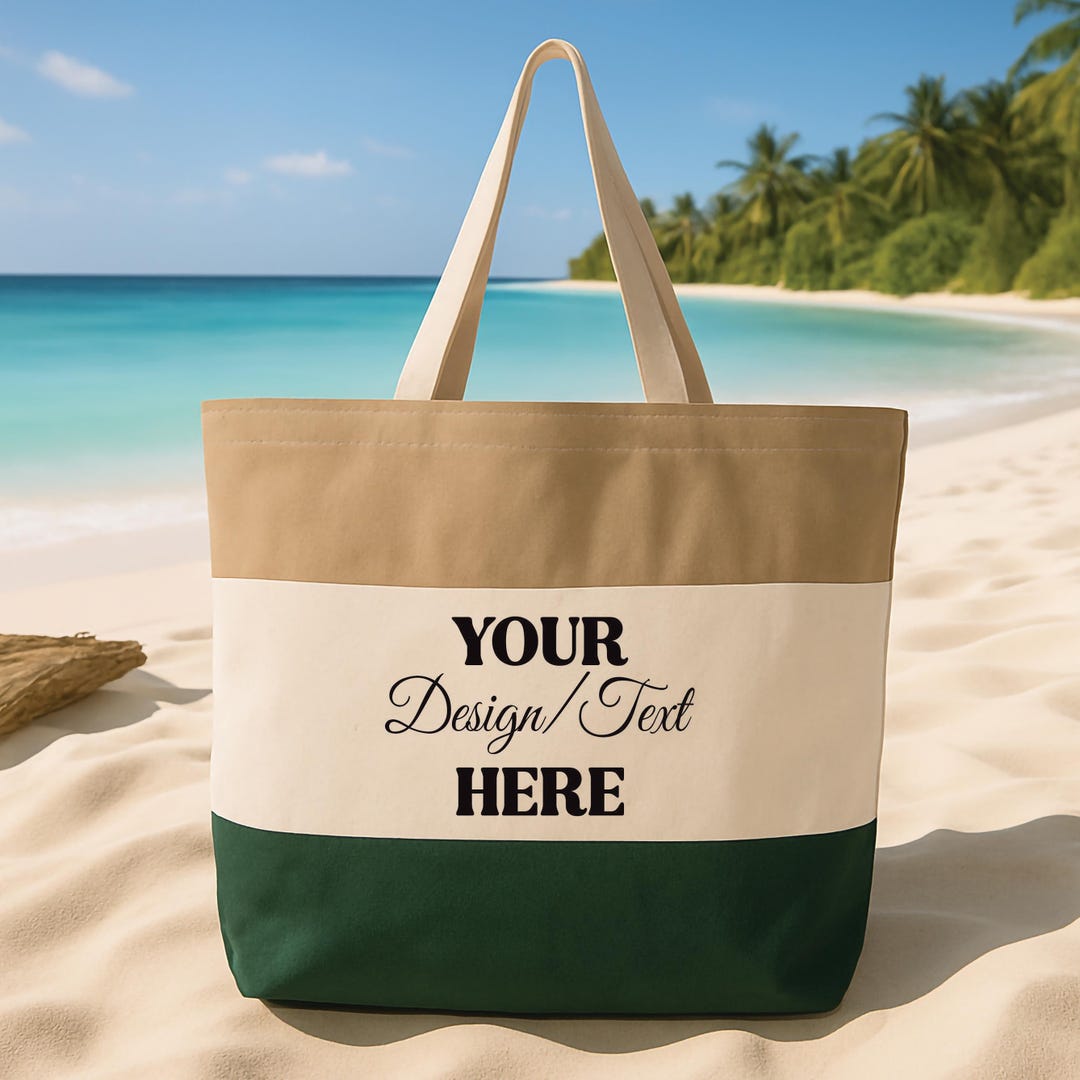 Custom Tri Color Canvas Tote Bag, Personalized Colorful Tote Bag, Beach ...
