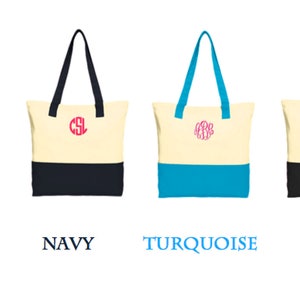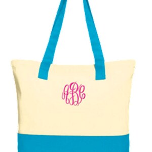 Monogram Canvas Tote Bag - Custom Thread Colors, Zip Closure - Etsy