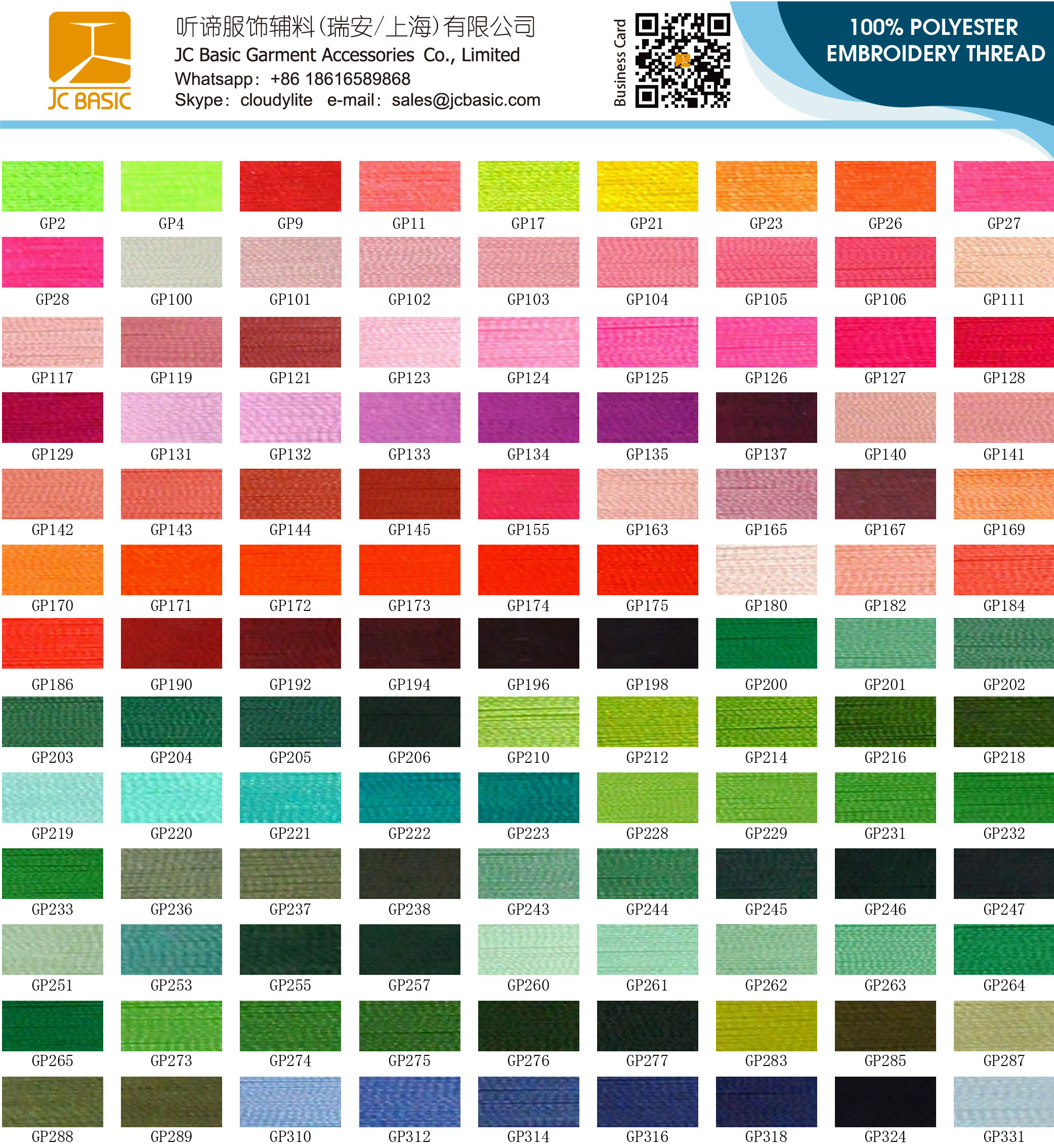 Polyester Embroidery Thread Color Chart