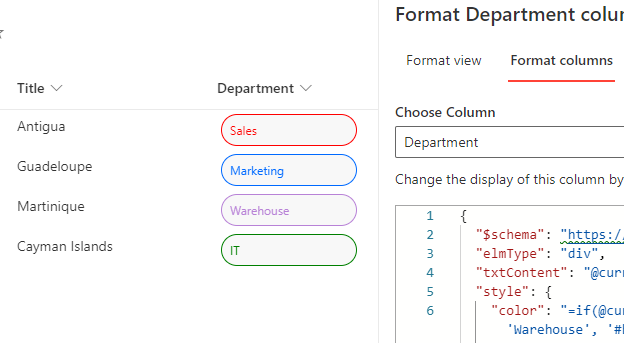 Color Formatting Of A SharePoint Online List Using JSON