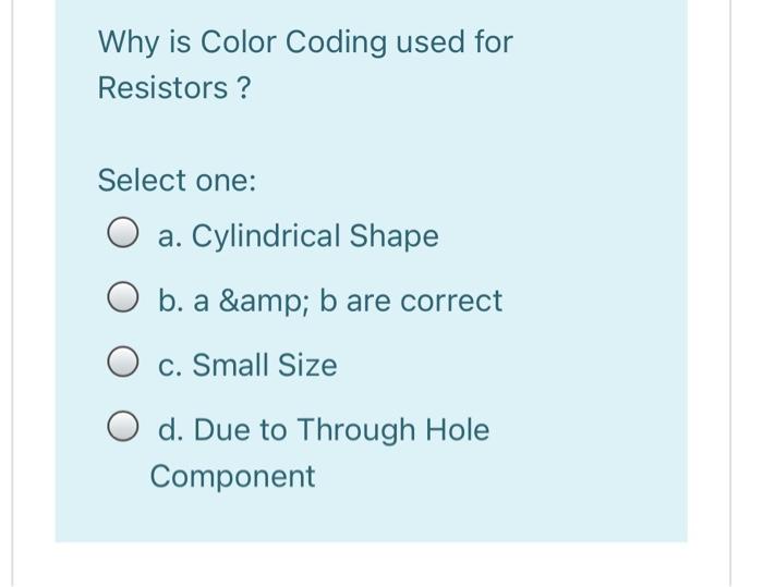 Solved Why is Color Coding used for Resistors ? Select one: | Chegg.com