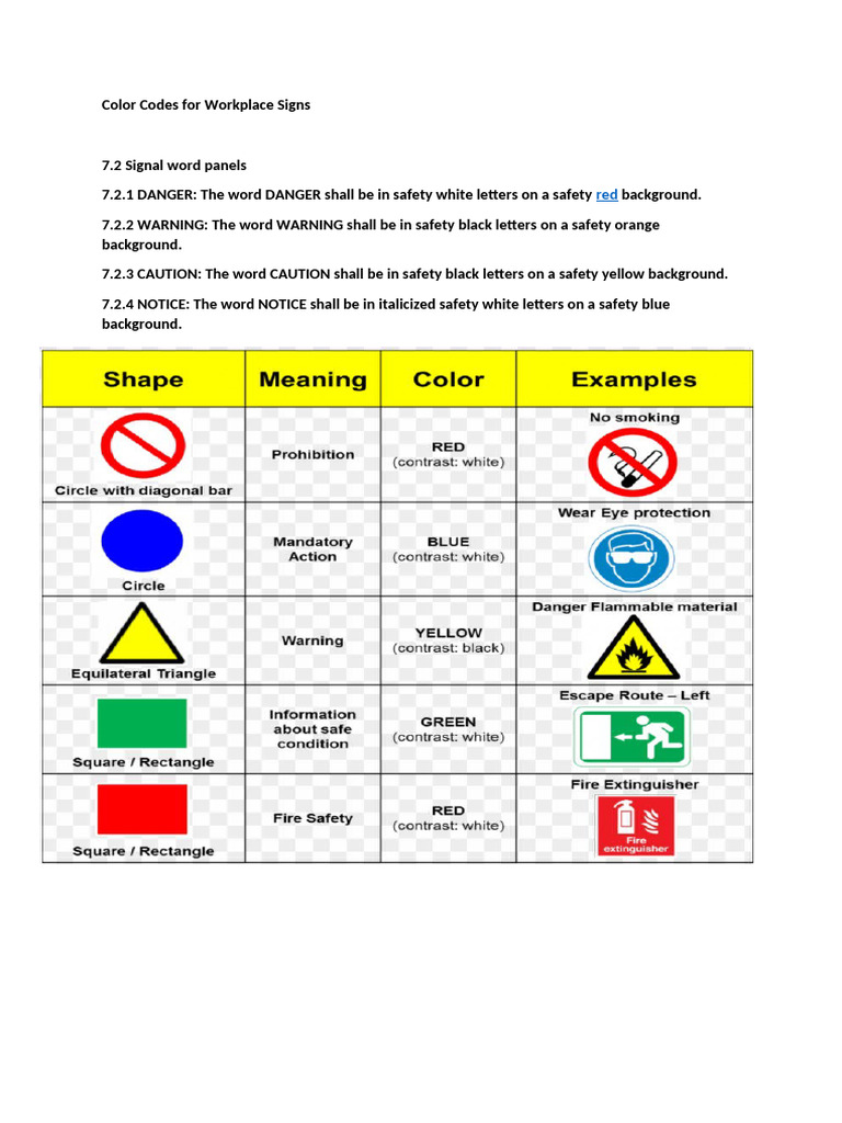 Color Codes For Workplace Signs | PDF