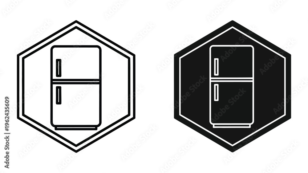 Contrast icons depicting a refrigerator inside a hexagonal frame with ...