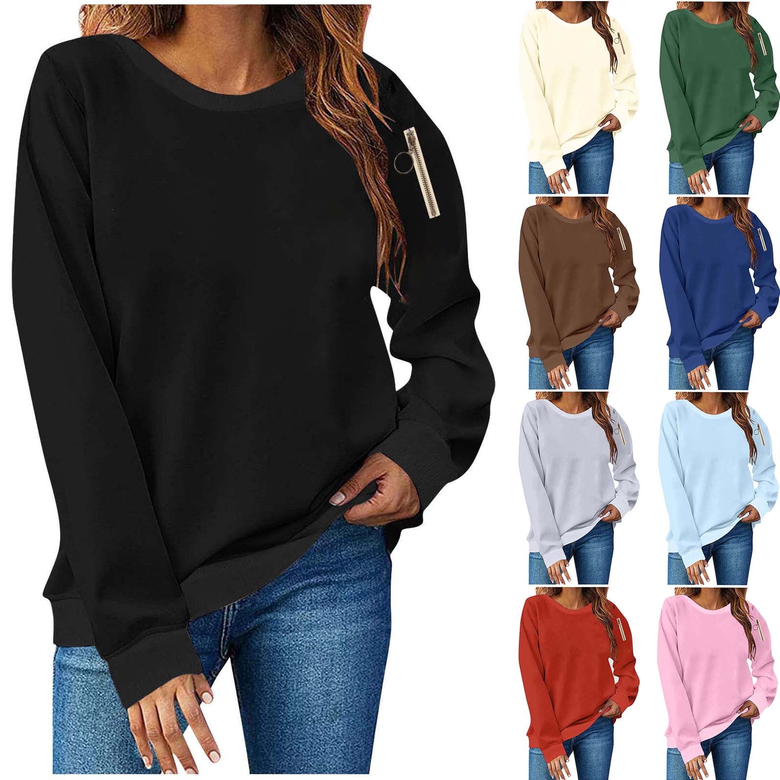 Miluxas Womens Sweatshirts Loose Crew Neck Solid Color Casual Long ...
