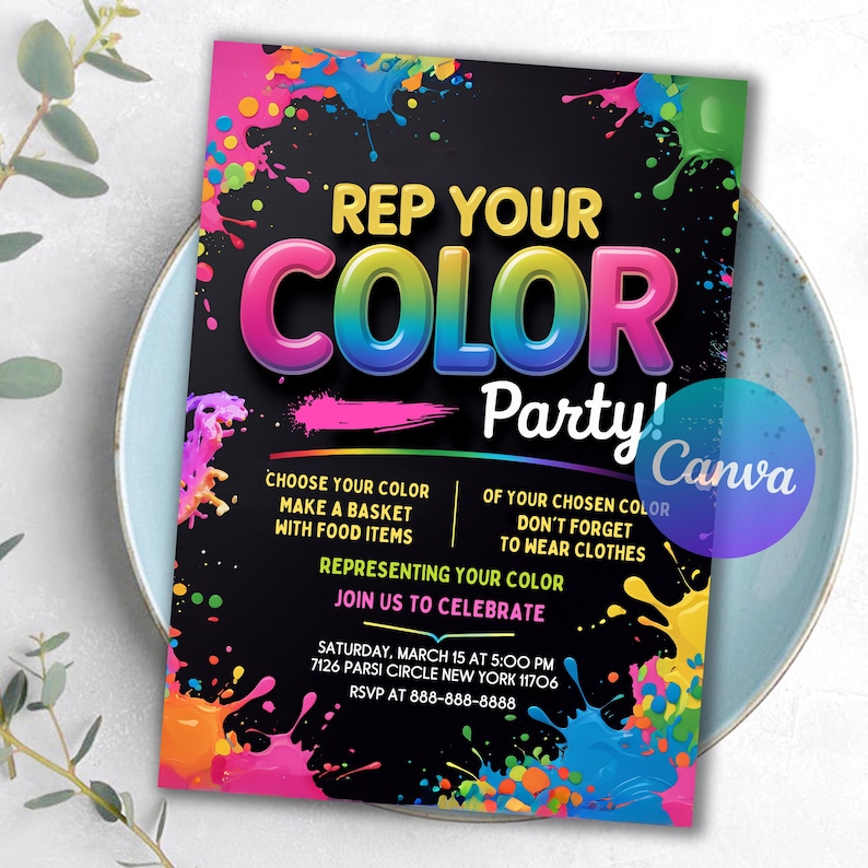 Editable Birthday Invitation, Rep Your Color Invitation, Color Theme ...