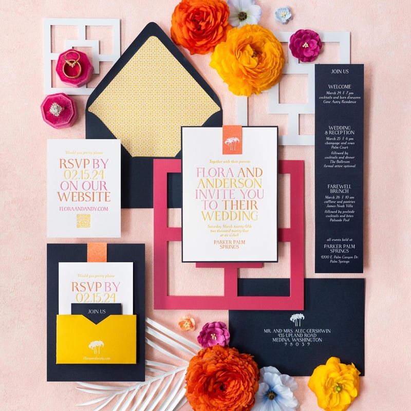 Colorful Wedding Invitations | Letterpress Wedding Invitation | Modern ...