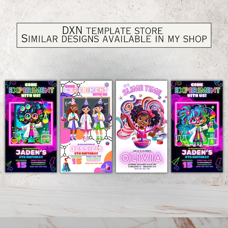 Editable Mad Science Birthday Invitation, Neon Lab Experiment, Science ...