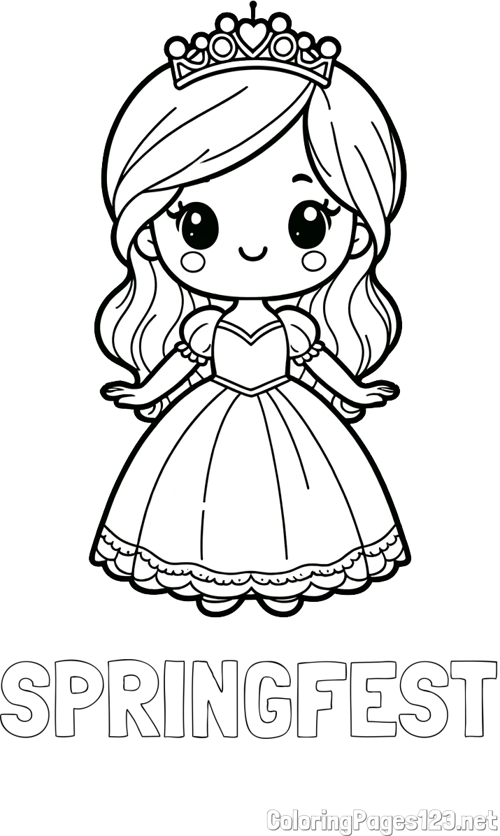 SPRINGFEST Coloring Page and Coloring Page of a Cute Princess
